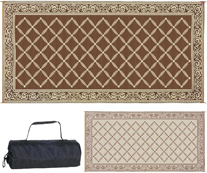 Stylish Camping 119187 9-feet by 18-feet Reversible Mat, Plastic Straw Rug, Large Floor Mat for Outdoors, RV, Patio, Backyard, Picnic, Beach, Camping (Brown/Beige)