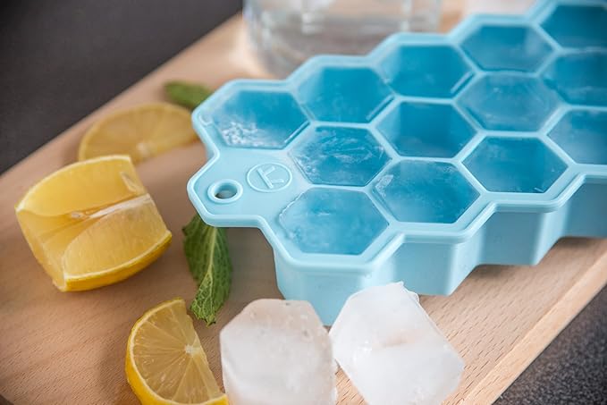 - SLEEK BLUE COLOR: This ice cube tray (or should we say ice hex tray) comes in a beautiful ice blue color, sure to complement any kitchen space.