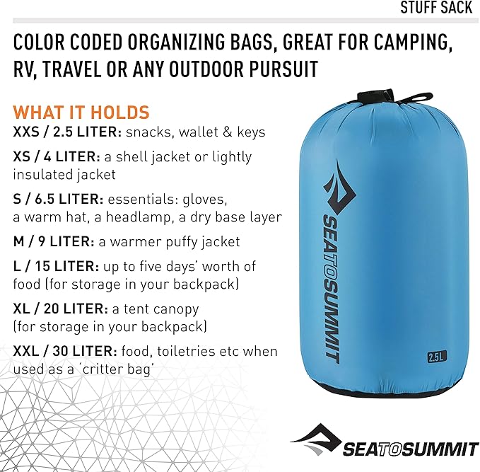 - Durable, lightweight 2.5-liter stuff sack for organized modular packing of gear and clothing in a backpack, suitcase, or duffle, for any outdoor or travel adventure