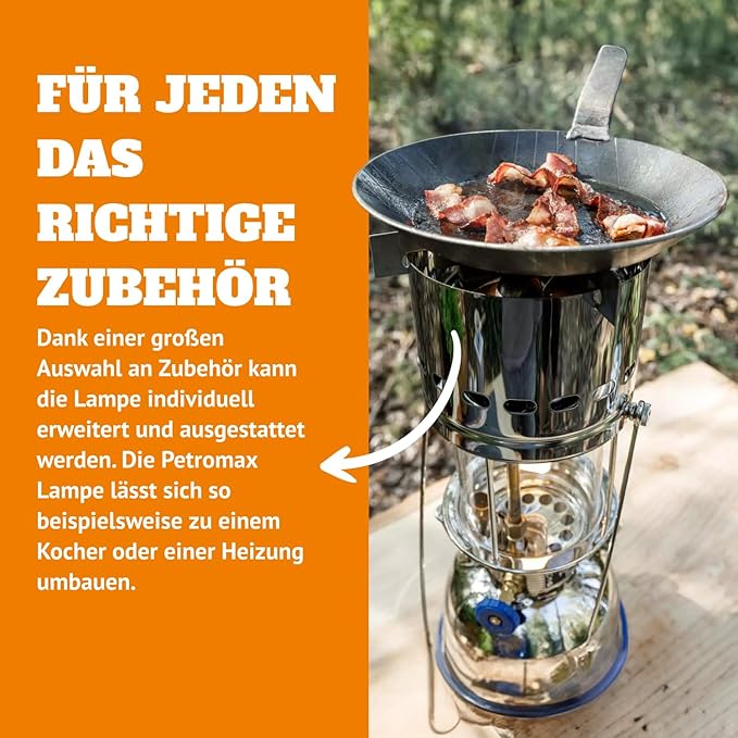 - Includes Petromax HK500 in Polished Brass, 1 funnel, 1 spare parts set, 1 spirit bottle, 2 mantles and a user manual