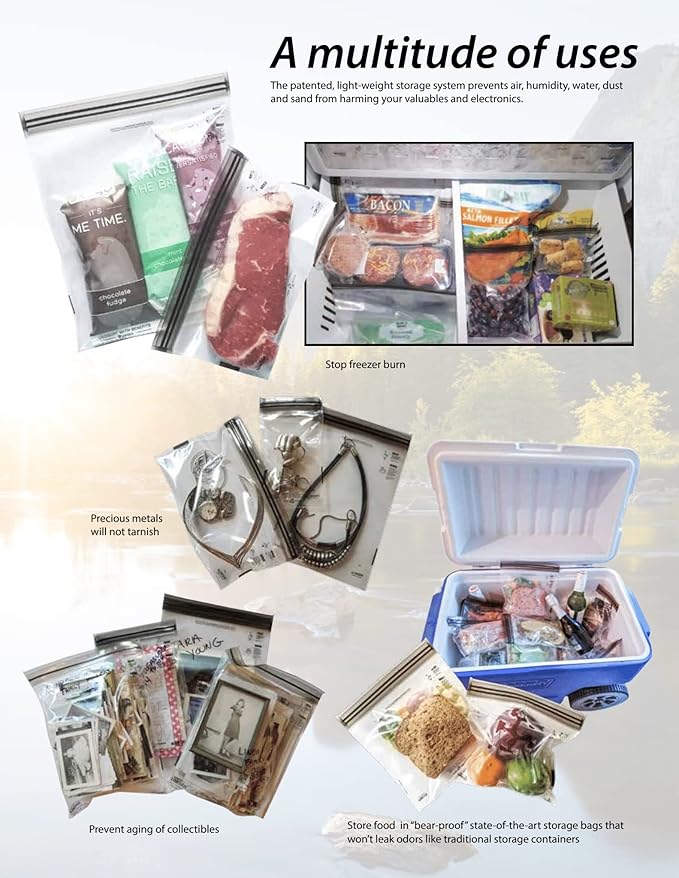 - Multiple Reusable Bags: Flexible, resealable bag provides unparalleled protection from environmental damage to electronics, personal items, and firearms.