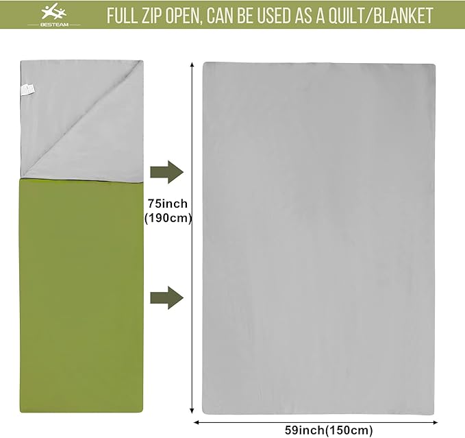 - HOT WEATHER SLEEPIGN BAG! This ultralight sleeping bag is comfort in 59°F/15°C, You can use our warm weather sleeping bag without sleeping bag liner in multiple weather conditions.
