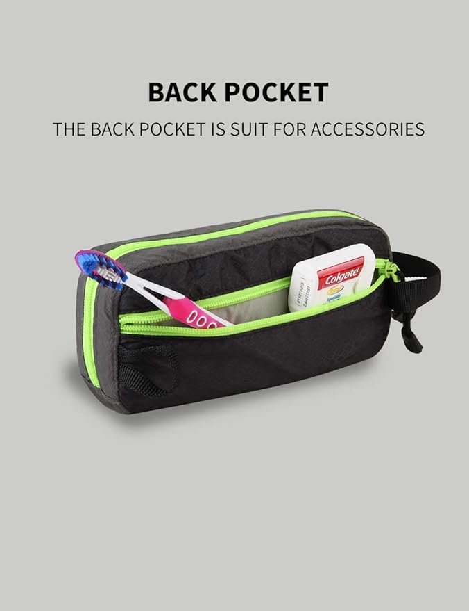 - LOTS OF POCKETS: In order to make things well organized, we designed of lots pockets for partition articles. Main compartment is large enough for bottles. In one side, a center pouch opens with a webbed waterproof zipper pouch. And in another side has been divided into 2 elastic mesh pouches. Also there is one zipper pouch for keeping small items outside in back of the pouch.