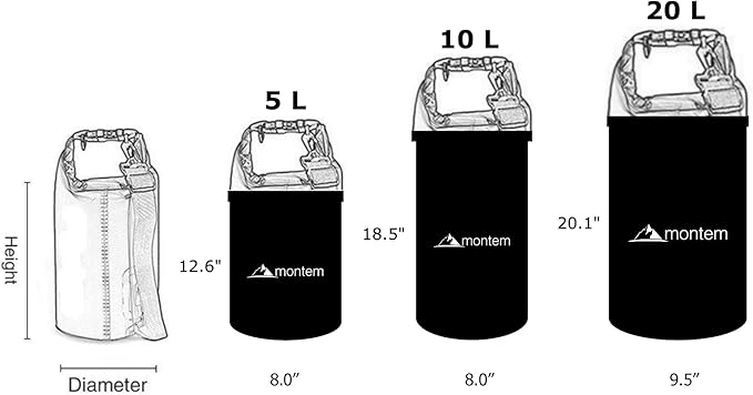 • ✅【WEATHER RESISTANT】With superior quality, your Montem Dry Bag comes in 500-denier polyester, vinyl-coating to seal out the elements with watertight, welded seams. Adjustable shoulder strap included! Keeps your gear safe & dry!
