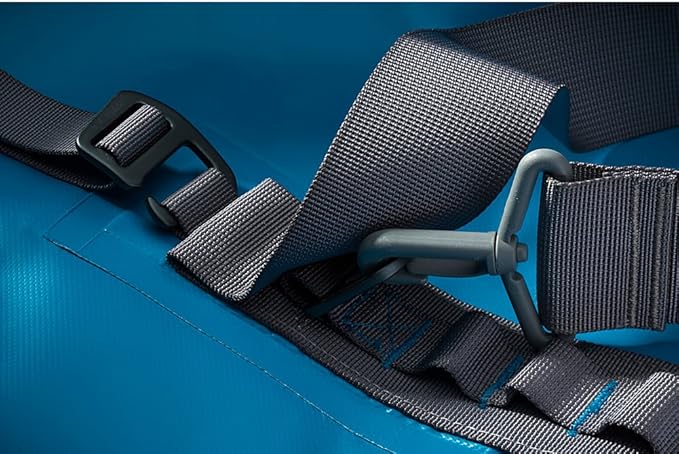 - Zip the duffel and hook the aluminum fasteners through the webbing loop to cinch down the bag for a more secure closure.