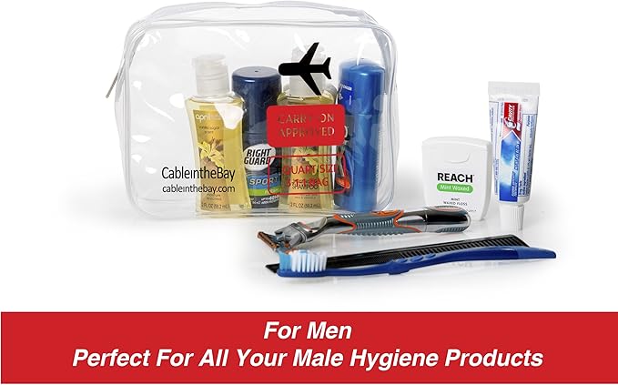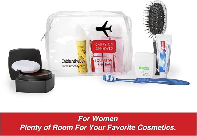 TSA Approved Clear Travel Toiletry Bag-Quart Sized with Zipper-Airport Airline Compliant Bag/Bottles-Men's/Women's 3-1-1 Kit+Travel (1 PACK)