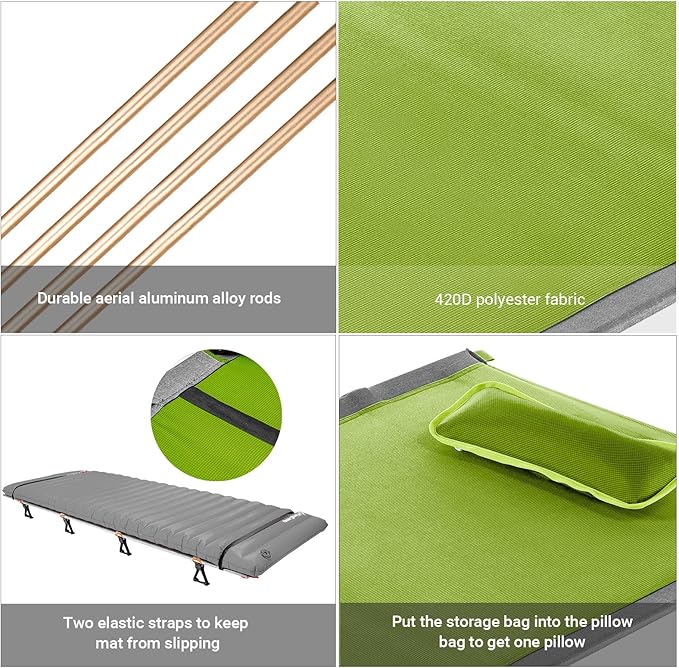• ★【Off Ground】 Enjoy comfort of a bed to the outdoors; Sleep free from rocks and other uneven surfaces when you use it; Don't worry about leaking like an air pad. You deserve a good night’s sleep when you’re camping.