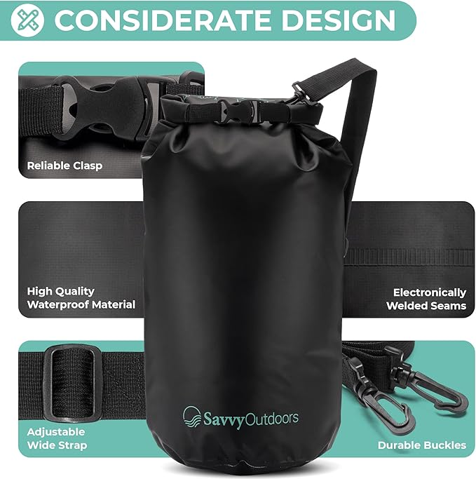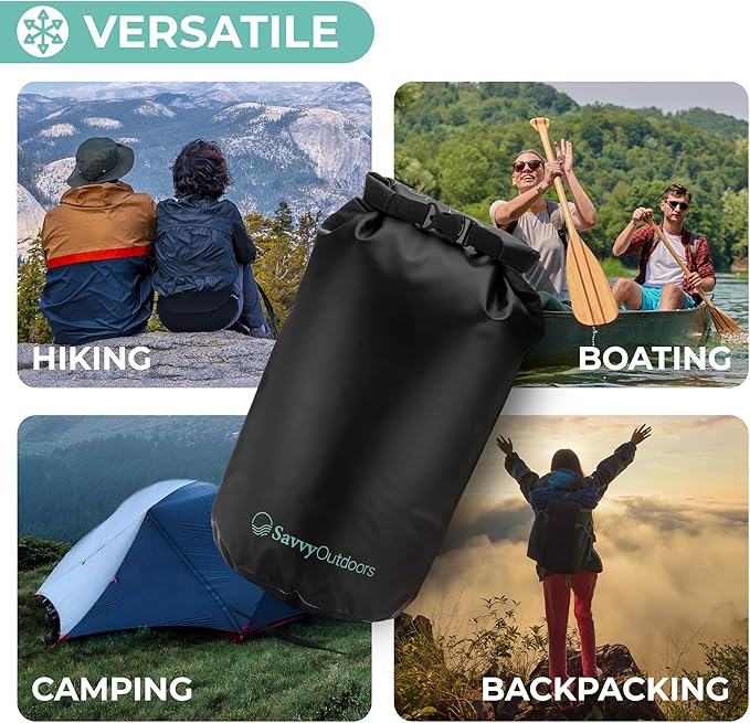 - COMES IN MANY VARIATIONS: Savvy Outdoors waterproof bag for kayaking, camping, and other outdoor trips is a stylish storage solution for your valuables like cellphones, food, and cash. We offer them in 4 sizes from 5 to 30 liters to suit your needs. There are also 5 colors you can choose from.