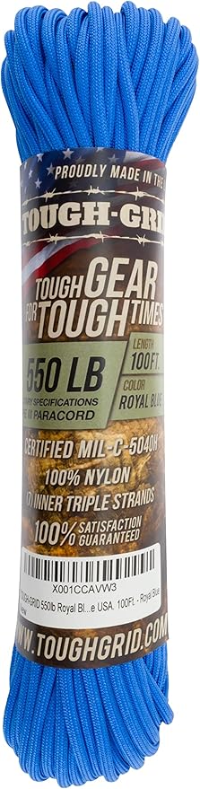TOUGH-GRID Premium Royal Blue Paracord 550 lbs Made in USA Outdoor Survival Nylon Rope Tactical Heavy Duty Strands Parachute Cord Used by US Military Type III Mil-Spec
