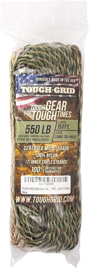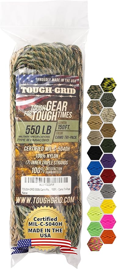 - VETERAN RECOMMENDED: Trusted by US Military Veterans, TOUGH-GRID Paracord is recognized for its reliability in critical situations. Whether camping, hiking, surviving, or crafting, rely on TOUGH-GRID to provide top-quality cordage.