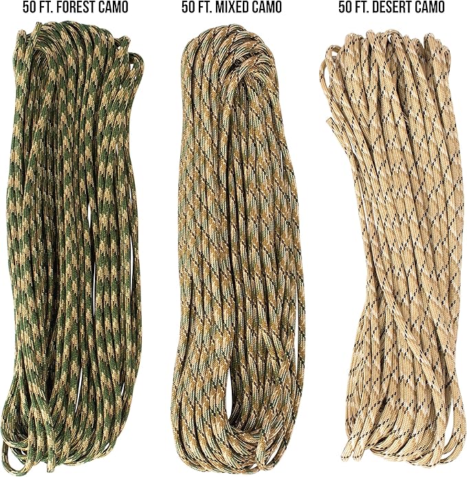 TOUGH-GRID Premium 550lb Paracord Rope - 150ft - Camo Tri-Pack - 100% Nylon Type III Mil-Spec - UV & Abrasion Resistant - Heavy Duty Strands - Outdoor Survival Rope - Used by US Military -Made in USA