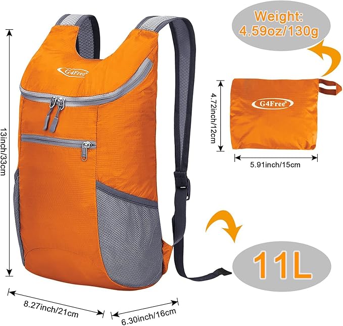 G4Free Lightweight Packable Hiking Backpack for Men Women Small Hiking Daypacks Foldable Shoulder Pack Casual Outdoor Bag 11L