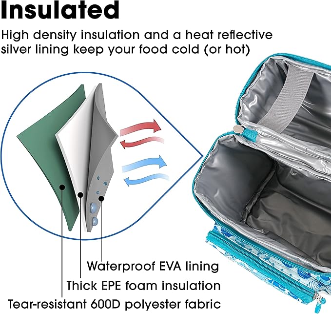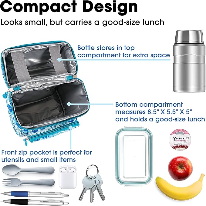 - Versatile – Works well as a lunch box for girls 10-12, a women’s lunch bag for work, or as a insulated lunch bag for kids age 8 years and up