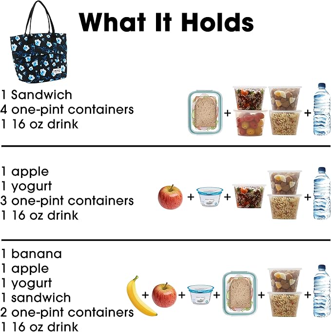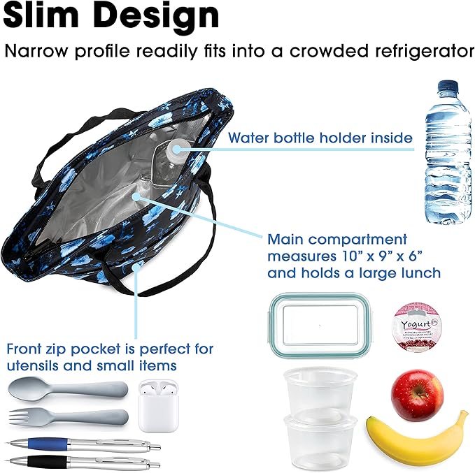J World Lola Lunch Tote Bag Insulated Lunch-Box for Women & Teen Girls, Night Bloom