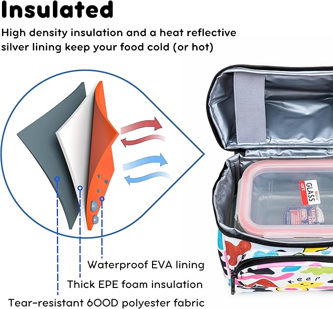- Insulated — High density insulation and a heat reflective silver lining keep your food cold (or hot) in this thermal lunch bag