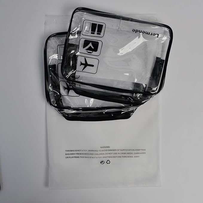 Lermende 2pcs Clear Toiletry Bag TSA Approved Travel Bag,Carry On for Travel,Airport Airline Accessories Compliant Bag,Quart Sized Makeup Cosmetic bag Women Men (Black, 2 Pack)