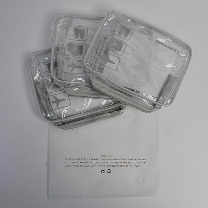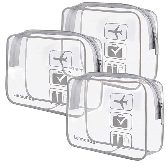 Lermende 2pcs Clear Toiletry Bag TSA Approved Travel Bag,Carry On for Travel,Airport Airline Accessories Compliant Bag,Quart Sized Makeup Cosmetic bag Women Men (Gray, 3 Pack)