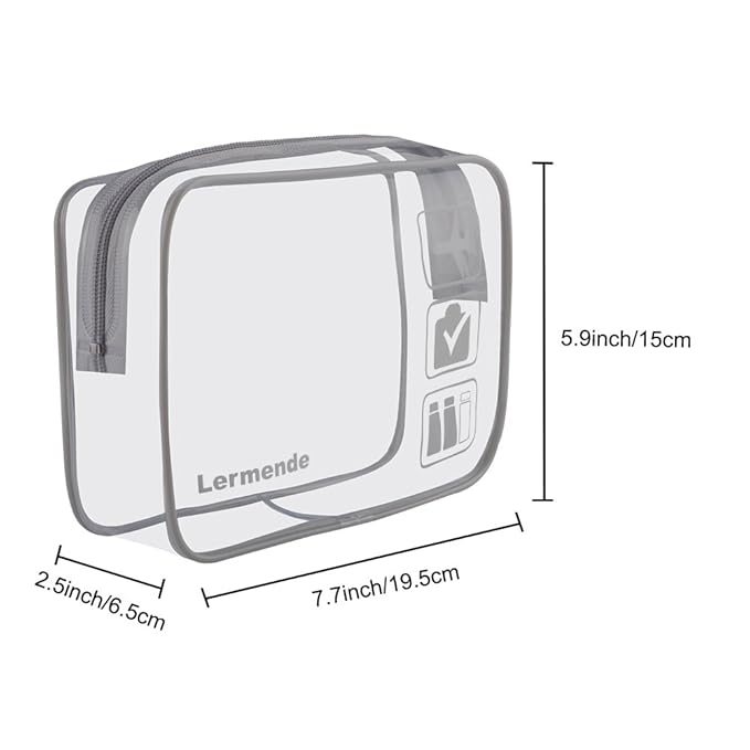 - ✈Carry-on Size & Versatile TSA Toiletry Bag- the quart size carry on tsa bag measure is 7.7 x 5.9 x 2.5 inches, it is convenient to carry on when you are traveling or go out. Lermende clear toiletry bag is ideal as a travel liquids bag, tsa bag, shampoo bag, liquid soap bag, cosmetics bag for lotion, perfume, toothpaste, toothbrush, comb and so on.