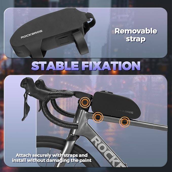 - EASY TO INSTALL: Adjustable hook and loop design, suit for more size MTB road bikes. Install and release the top tube bag quickly and without any tools