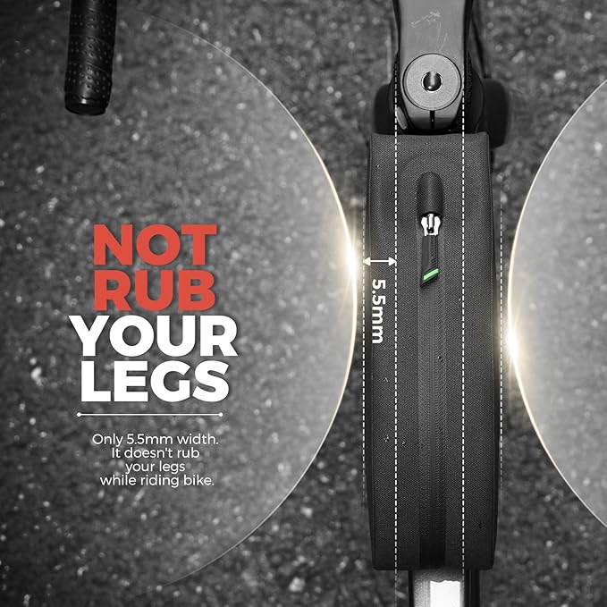 - COMFORTABLE & CONVENIENT: The front bike bag has a long slim body. Proper space design make you ride more smoothly and comfortable(Your knees will not hit the frame bike bag easily). It's portable, you can take this bike pouch easily while leaving away from your bike