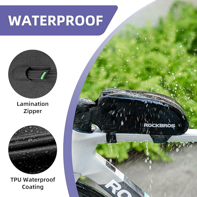- WATERPROOF: Surface material of this frame bag is TPU material, and adhensive waterproof zipper. The bag inside would not be wet, you can have a cool riding