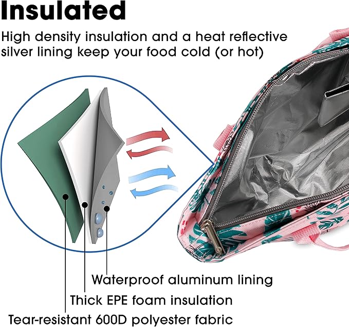 - Insulated — High density insulation and a heat reflective silver lining keeps your food cold (or hot) in this thermal lunch bag