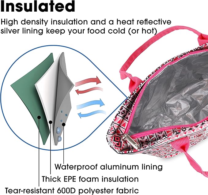 - Insulated — High density insulation and a heat reflective silver lining keeps your food cold (or hot) in this thermal lunch bag