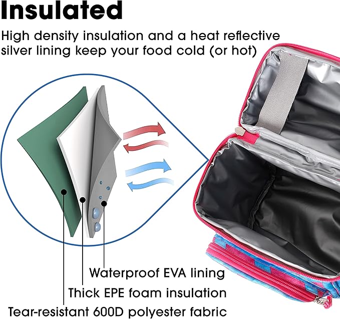 - Insulated — High density insulation and a heat reflective silver lining keep your food cold (or hot) in this thermal lunch bag
