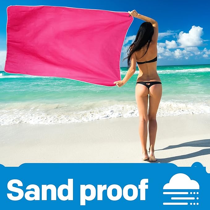 - SOFT COMFORTABLE & SAND PROOF: This travel towel are made from luxurious soft microfiber which is smooth and no any abnormal smell. Gives your skin a dry feeling and can be used as a sun shade to protect your skin. The oversized beach towel aslo sand-proof. When you play on the beach, microfiber towel doesn't stick to the sand. Whether you use as a gym towels, camping towel, hand towel, face towel, sweat towel or even as survival gear and equipment, these quick dry towels will come in handy!