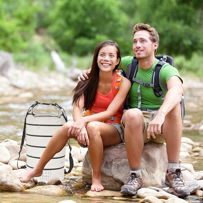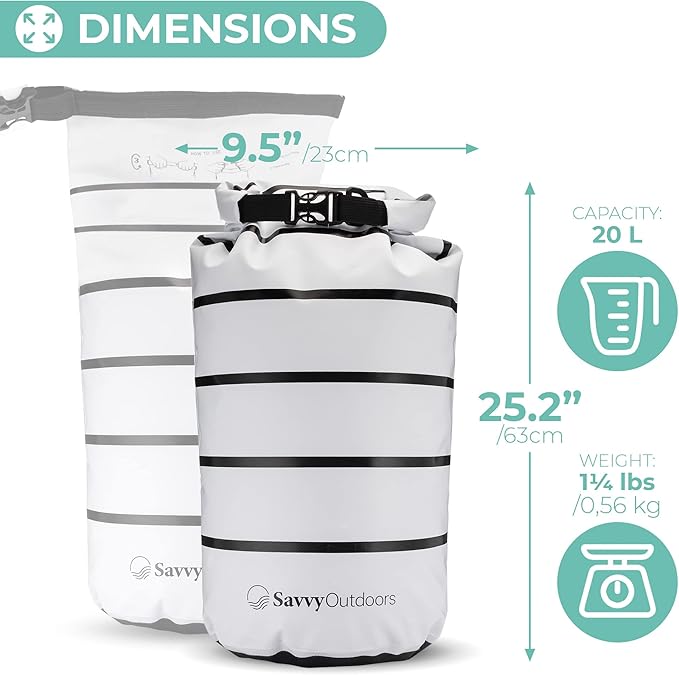 Savvy Outdoors Waterproof Dry Bag - Dry Bags for Food & Gear, Stuff Sacks for Backpacking and Camping Equipment, Waterproof Bag for Beach, Boating, Kayaking (20L, Stripe)