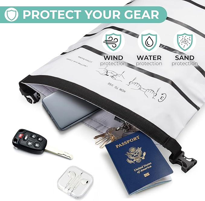 - QUALITY MAKE AND DESIGN: Savvy Outdoors' durable dry sack is made of 100% waterproof polymer. Its seams are electronically welded and it has a roll-up closure /clasp to prevent any moisture, dirt, or sand away from its contents. It could even float if accidentally dropped on water!