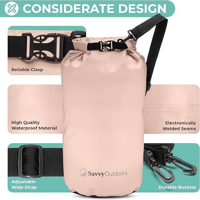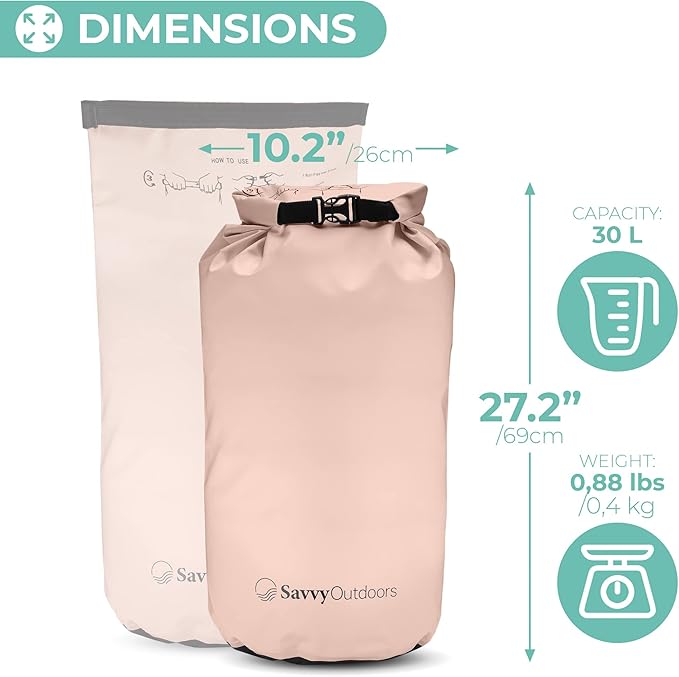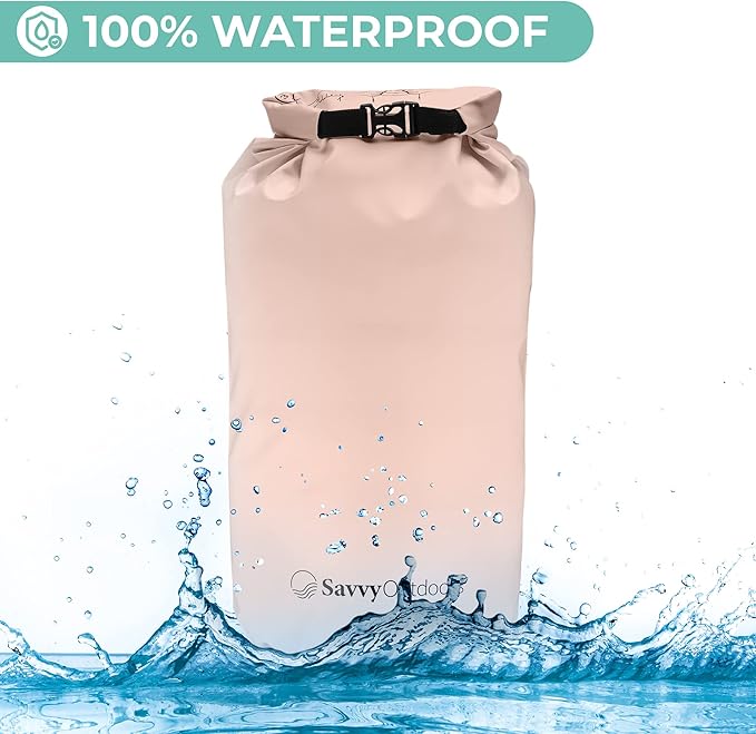 Savvy Outdoors Waterproof Dry Bag - Dry Bags for Food & Gear, Stuff Sacks for Backpacking and Camping Equipment, Waterproof Bag for Beach, Boating, Kayaking, Available in 5L, 10L, 20L, or 30L, Blush