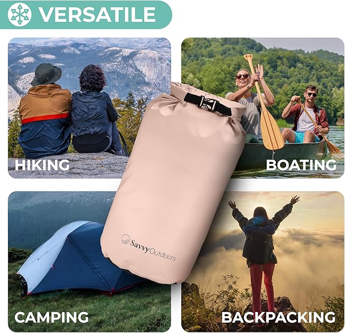 - COMES IN MANY VARIATIONS: Savvy Outdoors waterproof bag for kayaking, camping, and other outdoor trips is a stylish storage solution for your valuables like cellphones, food, and cash. We offer them in 4 sizes from 5 to 30 liters to suit your needs. There are also 5 colors you can choose from.