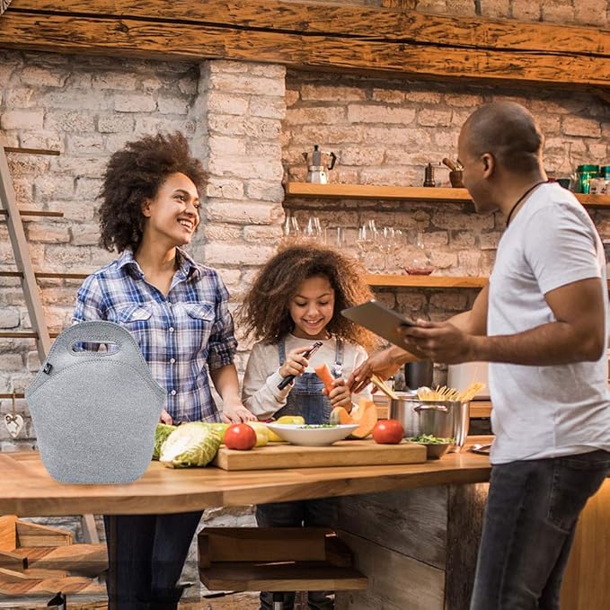 Neoprene Lunch Bag,LOVAC Thick Insulated - Durable & Waterproof Lunch Tote With Zipper For Outdoor Travel Work School (Cool Gray)