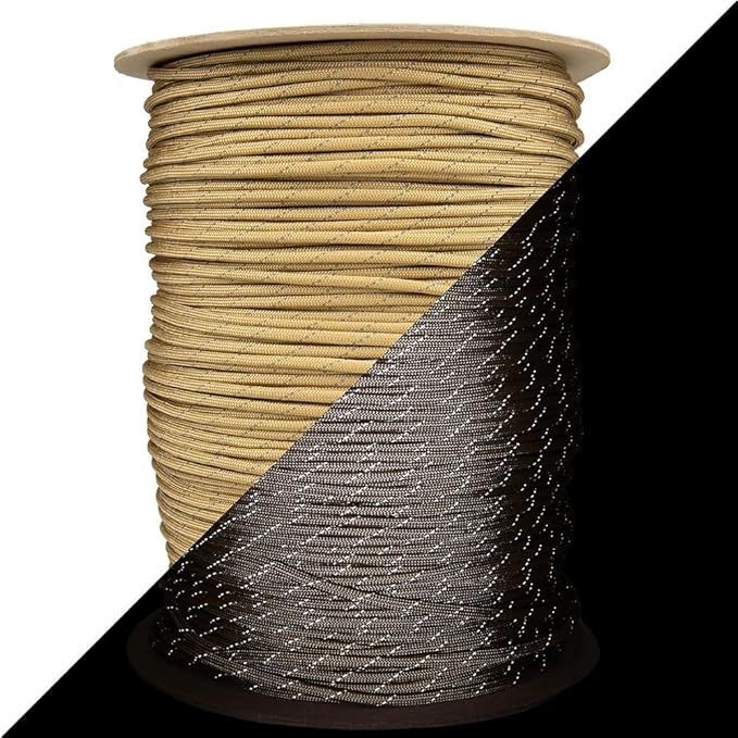 - BULK REFLECTIVE CORD is available in hanks of 10 ft, 25 ft, 50 ft, and 100 ft and spools of 250 ft and 1,000 ft with over 30 colors to choose from. Relied on for its strength and versatility, this cord is a must-have addition to your hiking gear, camping setup, and fishing supplies.