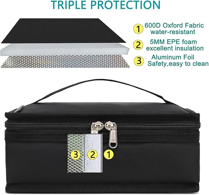 - ✿ Material:The FlowFly reusable Lunch Bag is made of the highly durable 600D Polyester,food grade aluminum foil inside, padded with extra thick 5mm PE foam and sturdy zippers.