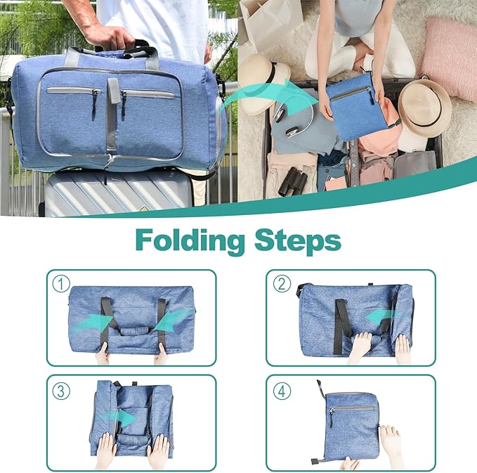 - Foldable and Spacious travel bag:The travel organizer bag can be folded into a really small size taking up so little space but opens up to have about 65L capacity of travel bags to use as a luggage bag in case that your suitcase swells. This travel duffel bag is designed to work best with bag packing cubes - to give you an organized lightweight travel experience.