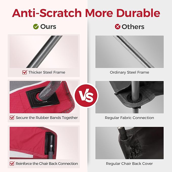 - 🌳 【Extra Storage Spaces】 This chair comes with two-cup holders. One holds a larger 32-ounce drink, while the other holds a standard cup size. Side organizer with a zip pocket and cell phone holder. Padded armrest and oversize frame to ensure comfort of this chair.