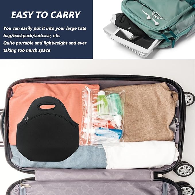 - FASHION DESIGN: This top-notch lunch tote bag is insulated by neoprene.It is Environmental and lead-free.Stain resistant and machine washable. High-quality zipper. The flat bottom will keep your bento lunch box and water bottle upright and will help you to prevent spillages.