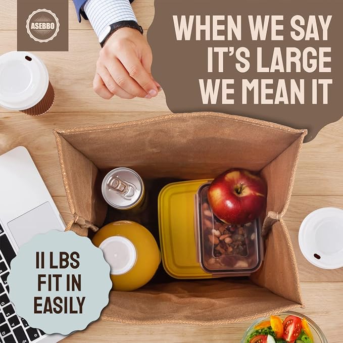 - SUPERIOR TEMPERATURE RETENTION – Designed with extra-thick aluminum insulation, this paper bag lunch bag reusable keeps meals hot or cold for hours. The leakproof interior ensures no spills, making it perfect for work, travel, or outdoor dining.