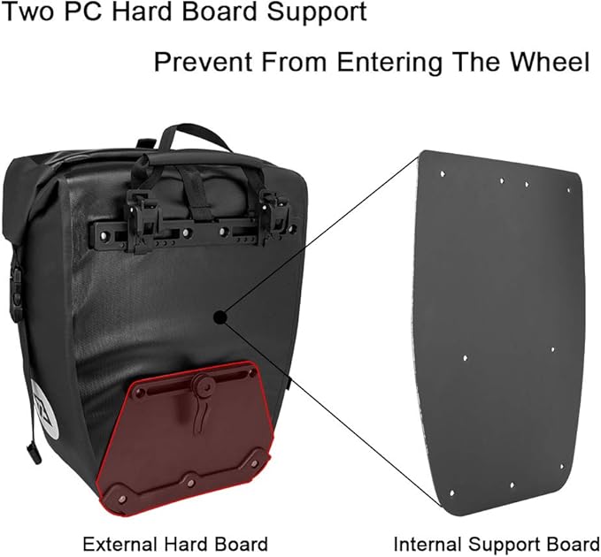 - HUMANIZED DESIGN: The fixing plate on the back of the bag effectively prevents the pannier bag from getting into the bike spokes. Roll up closure design be of more Water - repellent performance than traditional zippers,and it can help you easily access the personal belongings in the bag.