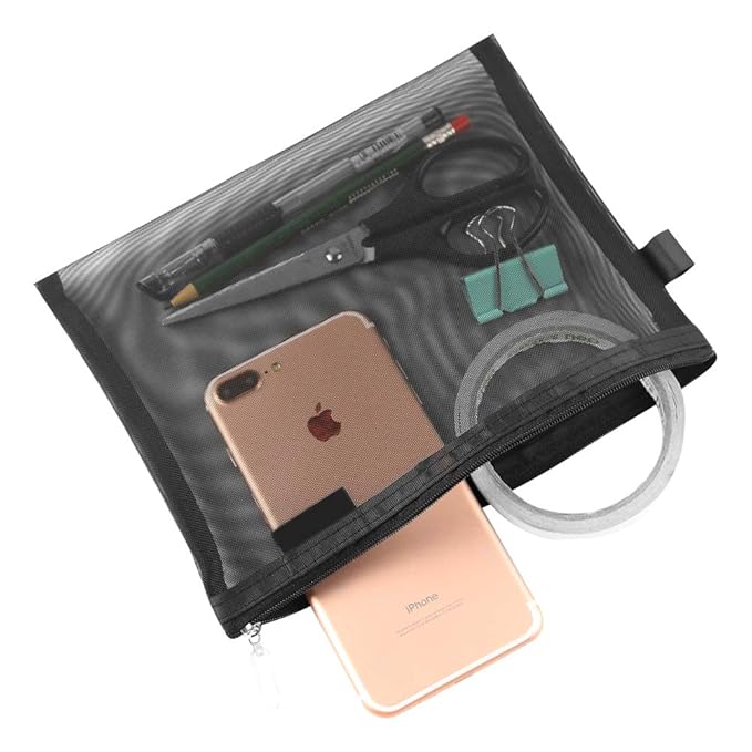 - Set of 6 toiletry bags provide attractive and lightweight solution to many storage needs. This mesh bag is perfect for organizing small things to keep them handy. It can be used as cosmetic bag, pencil case, coin purse, make up bag travel kit, travel organizer bag, or to keep notes, check, bill and so on