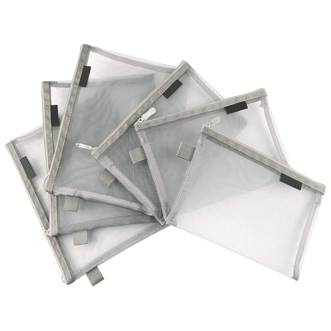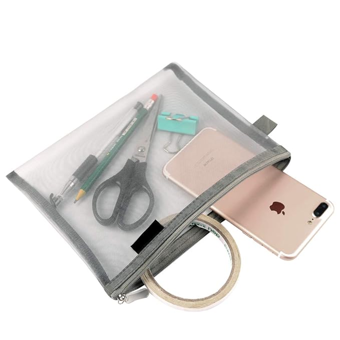 - Set of 6 toiletry bags provide attractive and lightweight solution to many storage needs. This mesh bag is perfect for organizing small things to keep them handy. It can be used as cosmetic bag, pencil case, coin purse, make up bag travel kit, travel organizer bag, or to keep notes, check, bill and so on