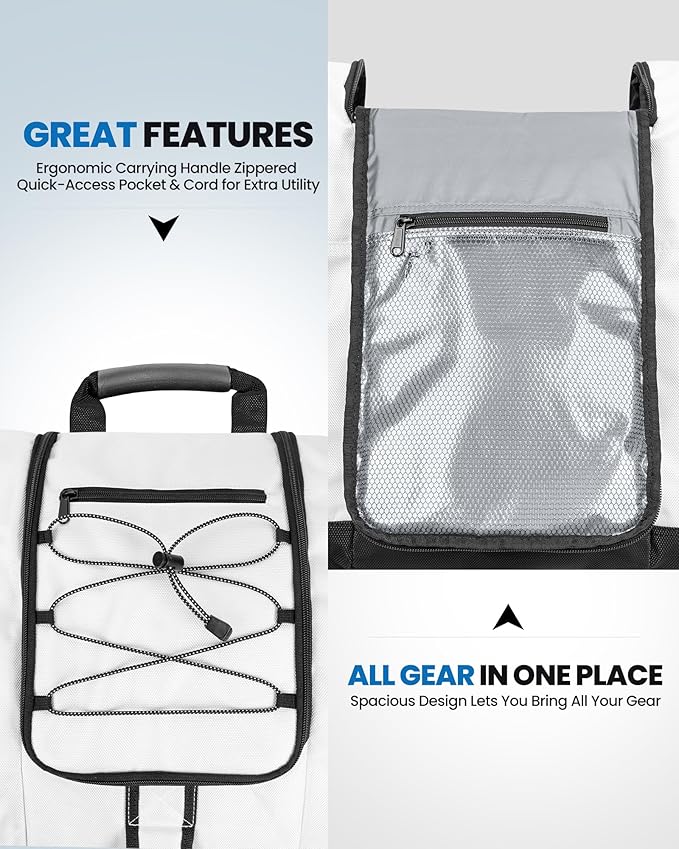 - Carry-All Spacious 50L Boot Bag: Fits any size boots, helmet, goggles, gloves and your other gear. Bring additional gear using the outer compression cords