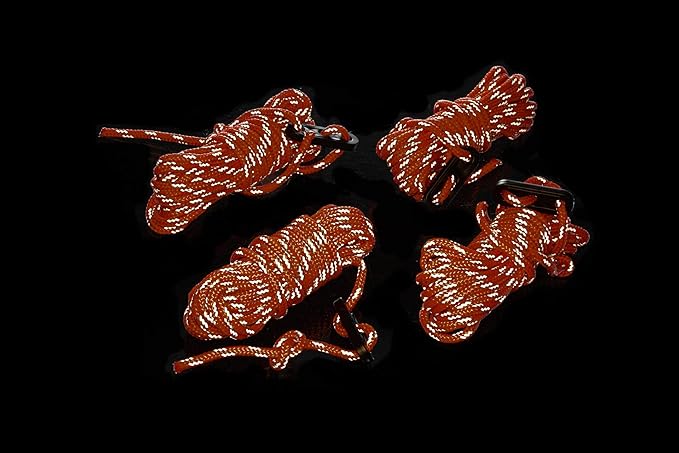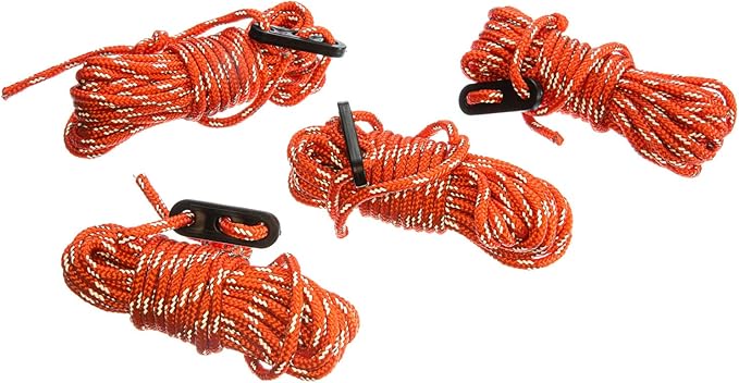 - This bright orange and grey tent guy line is made of reflective material, making your tent highly visible at night.