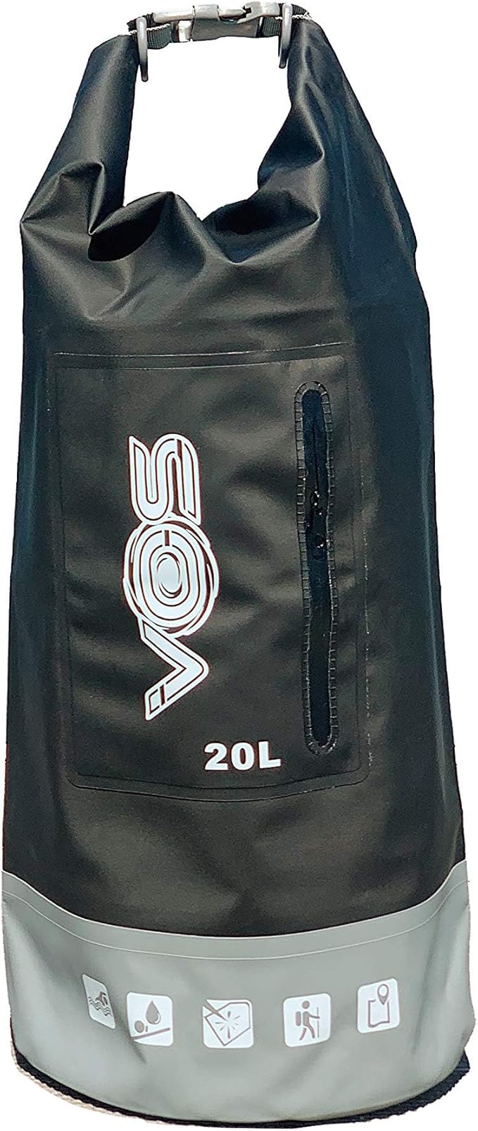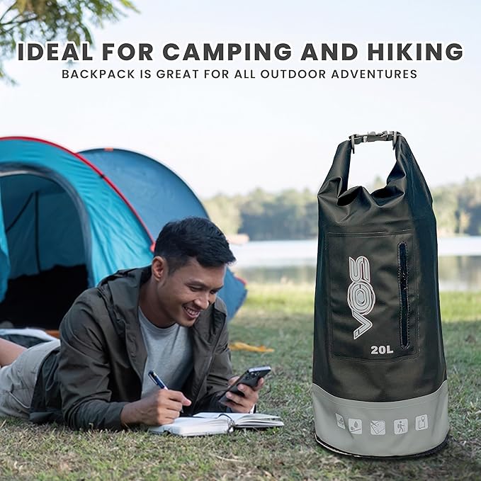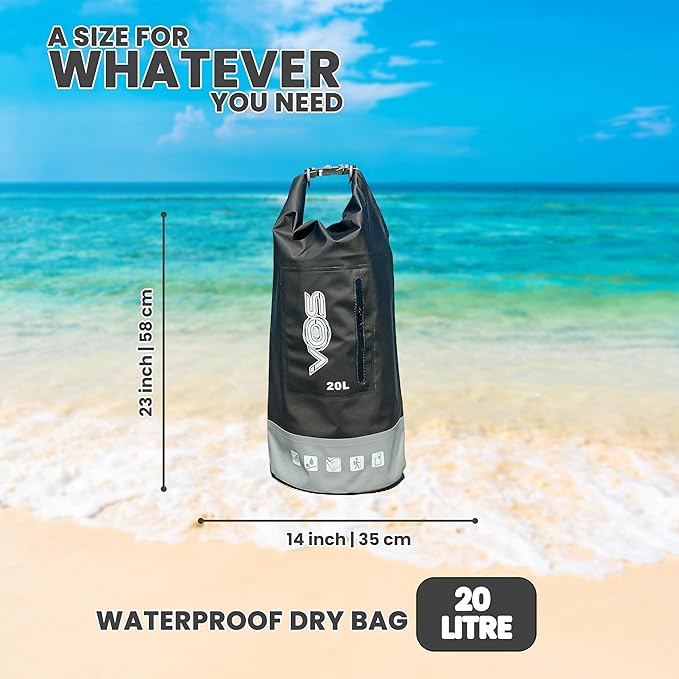 VOS Waterproof Premium Dry Bag – 20L | All-purpose Bag Lightweight Dry Storage Bag Backpack for Travel, Swimming, Boating, Kayaking, Camping, Beach (Black/Grey)