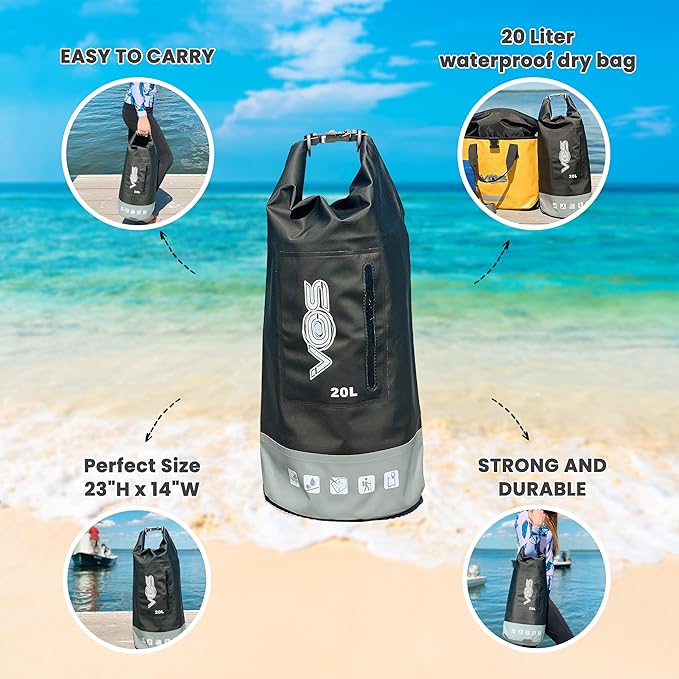 - IDEAL TRAVEL PARTNER - Keep your gear and personal items dry with the Vos Waterproof Dry Bags - all-purpose backpack. Perfect for rafting, kayaking, hiking, camping, boating, swimming and beach adventures.
