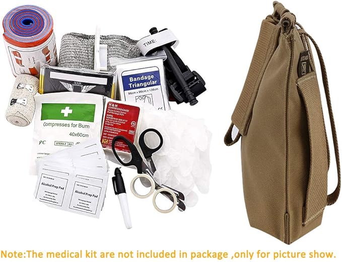 - Slim but can hold many necessary items,you can put 1 C.A.T Tourniquet 1 Israeli pressure bandage 1 pack of Celox 1 chest Needle D 1 chest seal and 1 set of latex gloves and etc in it.