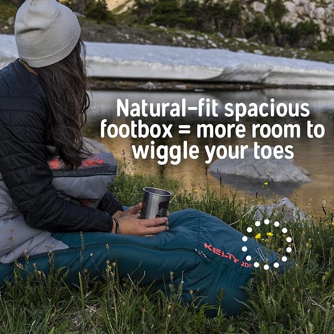 - Tailored Fit: Natural fit spacious footbox gives more room to wiggle your toes, and length options range to fit sleepers 5’8” to 6’6”. A handy stash pocket on the exterior of the bag for your overnight goodies and essentials in the tent.