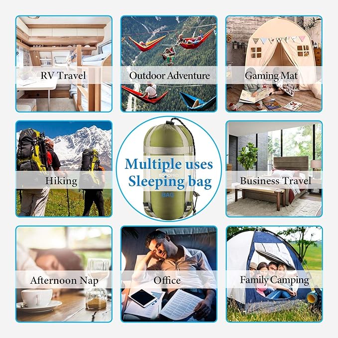 - 【MULTIPURPOSE VERSATILITY】You can use our warm weather sleeping bag without sleeping bag liner in multiple weather conditions. It's a perfect sleeping bag for Outdoor camping trips, Boy Scouts or mountain hiking,also works as camping comforter